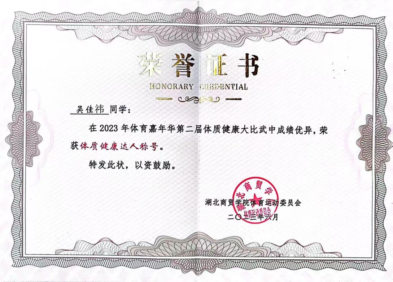 吴佳祎在2005年出生于江西抚州,是威廉williamhill会计学专业4班的学生,在校期间她积极报名参加各类竞赛,始终深耕专业、全面发展,在实践中锤炼本领,收获累累硕果:曾获第十届全国大学生电子商务“创新、创业及创业”挑战赛湖北赛区省级选拔二等奖、“正大杯第十四届全国大学生市场调研与分析大赛湖北赛区本科组选拔赛”三等奖、第四届“立信杯”全国会计技能大赛国家级三等奖、2024年数智化企业经营沙盘大赛校级三等奖、第九届中国国际“互联网+”大学生创新创业大赛校级三等奖、2023年“科云杯”全国大学生本科组企业财税管综合技能大赛校级二等奖、2023年体育嘉年华第二届体质健康大比武获体质健康达人荣誉称号。