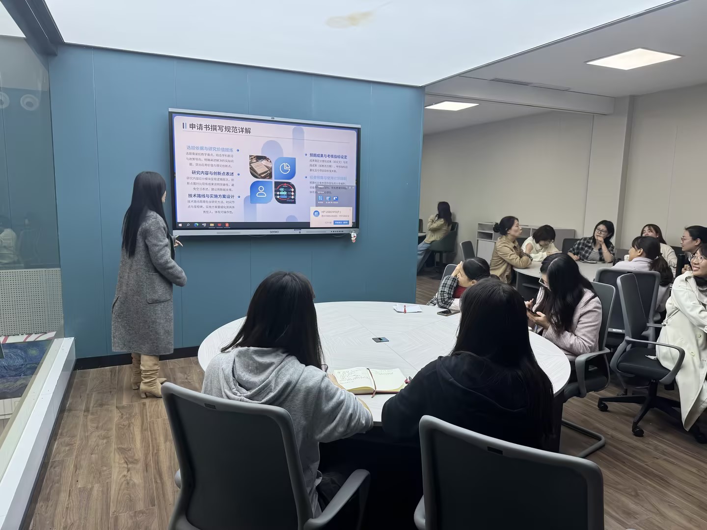 会上,资深教师分析了当前省校级教研项目的申报形势,强调项目选题应聚焦“教学痛点导向”,结合课堂教学改革、课程思政、产教融合、信息化教学等方向,力求“小切口、真问题、强应用”。随后,张思平老师结合其成功申报的省级教研项目案例,系统分享了申请书撰写经验,重点讲解了构建完整逻辑框架、注重教学实践结合、语言精炼突出重点、成果预期清晰可推广等要点。与会教师积极参与讨论,表示内容具体实用,对提升项目申报能力具有较强指导意义。